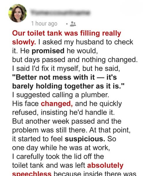 Since then, there’ve been no more secrets. We don’t hide struggles behind toilet tanks or late-night shifts. We lean in, together.Moral of the story? Sometimes, what seems suspicious is just love disguised in the clumsiest way possible.Ask the hard questions. Don’t leap to conclusions. And maybe… check your toilet tank now and then. You never know what your partner might be stashing—for better or worse.