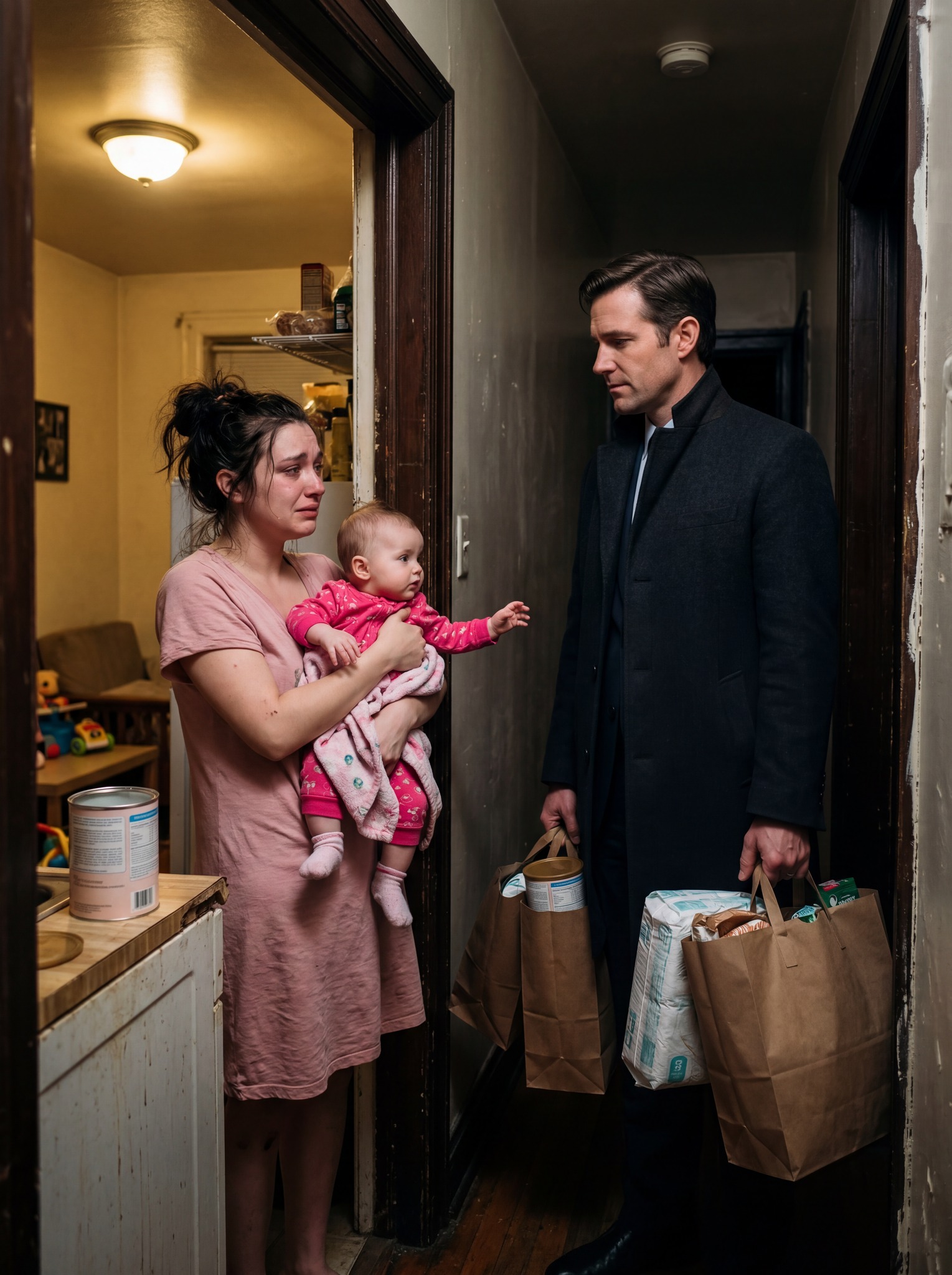 The apartment was painfully simple, yet carefully clean. The empty formula container still sat on the counter like a quiet accusation.