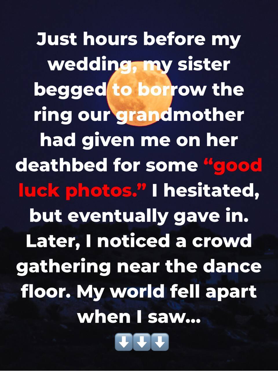 - Don’t decide anything while you’re still in shock — Look, you’re running on wedding adrenaline and emotional whiplash right now. Your brain is still buffering. Don’t make any big choices about your sister or the ring while you’re in that weird post-event haze.Give yourself a mental 48-hour cooldown. Just breathing room. You need clarity before consequences.