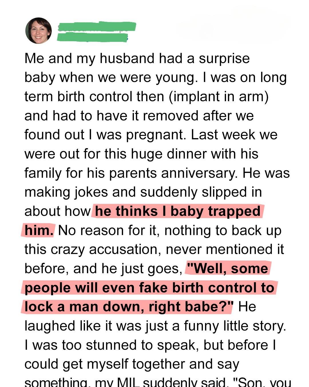 My husband turned to her, desperate. “She baby-trapped me, Mom! I never wanted this!”