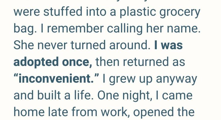 A sweater with a missing button. Everything I owned, tied at the top like trash. I remember calling her name.“Mama?”She didn’t turn around. I stayed there until a woman with kind eyes crouched down and said it was time to come inside. I kept watching the door long after it closed, convinced my mother would burst back in, breathless, apologizing, saying she’d made a mistake.