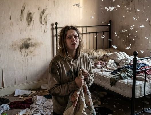 Crude, violent streaks of red and black spray paint covered the walls. The mattress had been systematically shredded, white feathers clinging to the wet paint like dying moths. Her jewelry box—emptied of its costume pearls—lay shattered. Candy wrappers were stuffed into her pillowcases. It wasn’t just a mess; it was a hate crime against a dead woman’s legacy.
