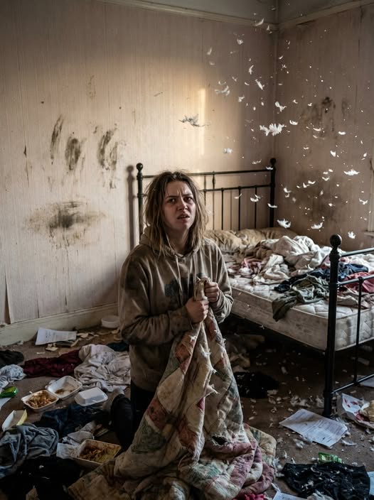 I walked into the living room and stopped dead. It was a massacre of memory. Fast-food bags were torn open and smeared across Gran’s handmade lace doilies. Soda cans had been tilted over, their sticky contents seeping into the hardwood. Crushed potato chips had been ground into the rug—not by accident, but with intentional, heavy footsteps.