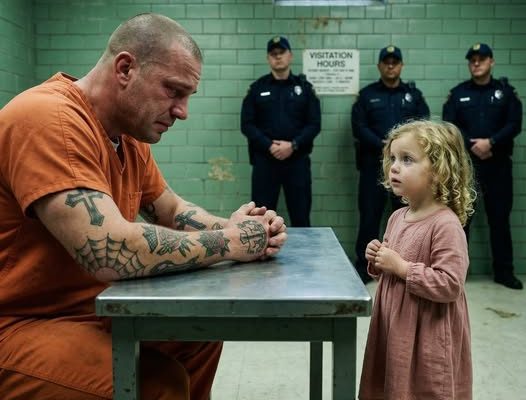 Three hours later, a white government vehicle rolled slowly through the security gate of the penitentiary. A social worker stepped out first, holding the hand of a small blonde girl whose calm expression seemed oddly out of place among the towering walls and watchtowers.