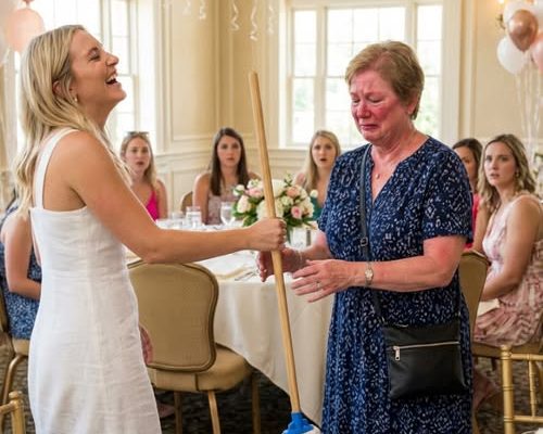 The room went silent. Emily didn’t look at the hosts or the catering staff. She looked directly at me. Then, she reached beside the catering station, grabbed a mop that had been placed there with chilling intentionality, and walked it over to me.