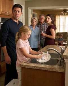 My little girl was standing on a white step stool at the sink, both hands wrapped around a dinner plate that looked too big for her, scrubbing with the kind of concentration no six-year-old should ever have to wear on her face. Her shoulders were tight. Her chin was tucked down. She moved carefully, like she already understood that dropping something might make the room turn against her.