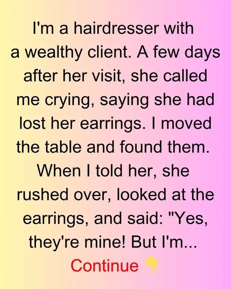 My sanctuary. My beautiful, honest salon. It was now a silent witness, and I, an unwitting accomplice, to a pain so deep it felt like it could swallow me whole. I looked at the new client, still sobbing softly in my chair, her face a mask of fresh agony. What have I done? The earrings on my ears felt like a curse. I didn’t know what to do. I still don’t. I just know that my beautiful, expensive gift is now the most heartbreaking thing I own.