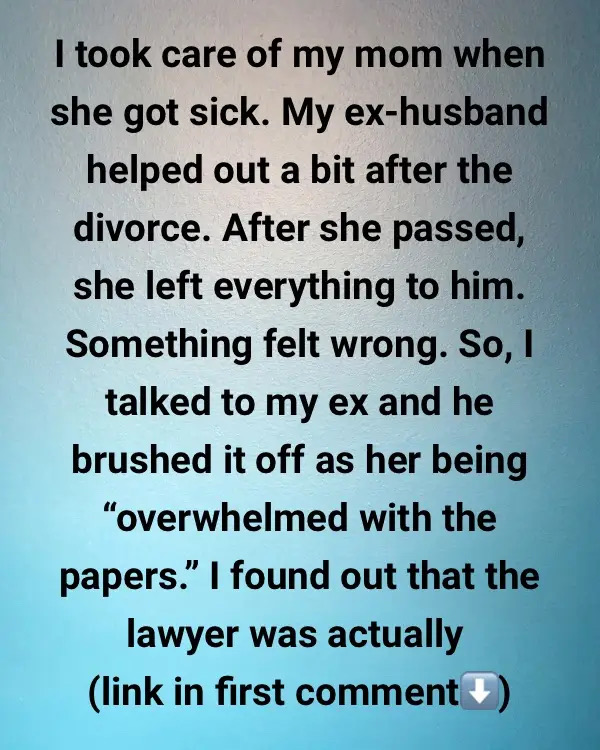 The lawyer’s office was hushed, sterile. Just me, my mom’s sister, and him, sitting across the table. My ex. I’d invited him, out of some misguided sense of decorum, some echo of the family we once were. The lawyer cleared his throat. He began to read. Clauses about her burial wishes, small bequests to charities, a token for my aunt.