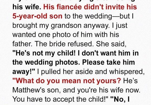 She stepped closer, her face contorted. “HE’S NOT MY SON!” she hissed, loud enough for a dozen guests to hear. “And he won’t be in ANY of our wedding pictures! This is my day, and I won’t have that child polluting it!”