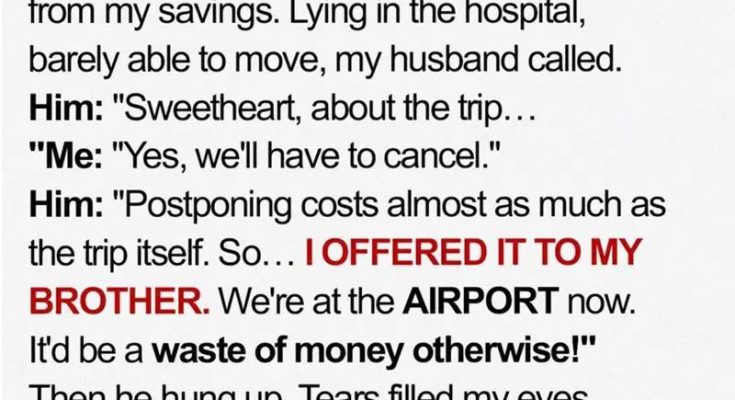 Then came the conversation. One afternoon, his face uncharacteristically grim, he sat on the edge of my hospital bed. “The trip,” he started, his voice a low rumble. “You know, the one we booked for next month. The Caribbean cruise.” My heart sank. Of course, the cruise. We’d planned it for months. A special anniversary. “It’s non-refundable,” he continued, not meeting my eyes. “And… I think I still need to go. I need this break, after everything.”