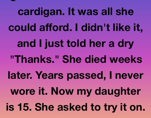 She got married. And one day, she had a daughter of her own. On her daughter’s fifteenth birthday, she came over holding the cardigan.