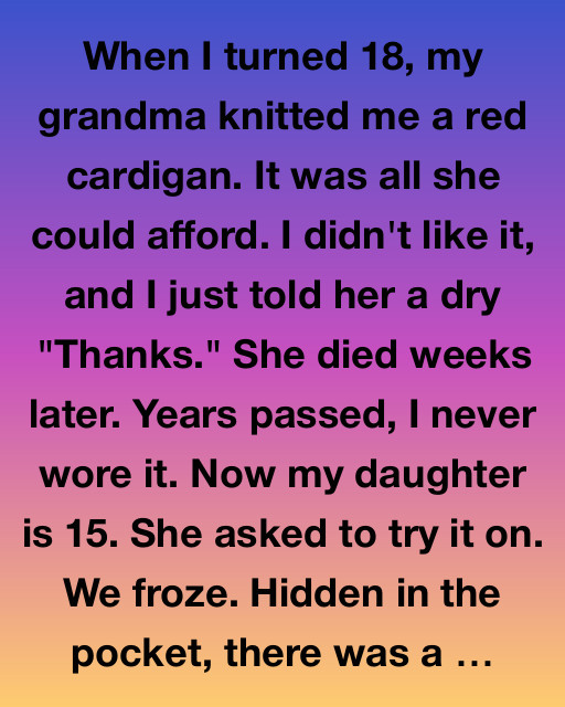 I hadn’t cried in years, but this simple sentence cracked something in me. “Did you know this was here?” my daughter asked, touching the cardigan like it was something sacred. “No,” I whispered.