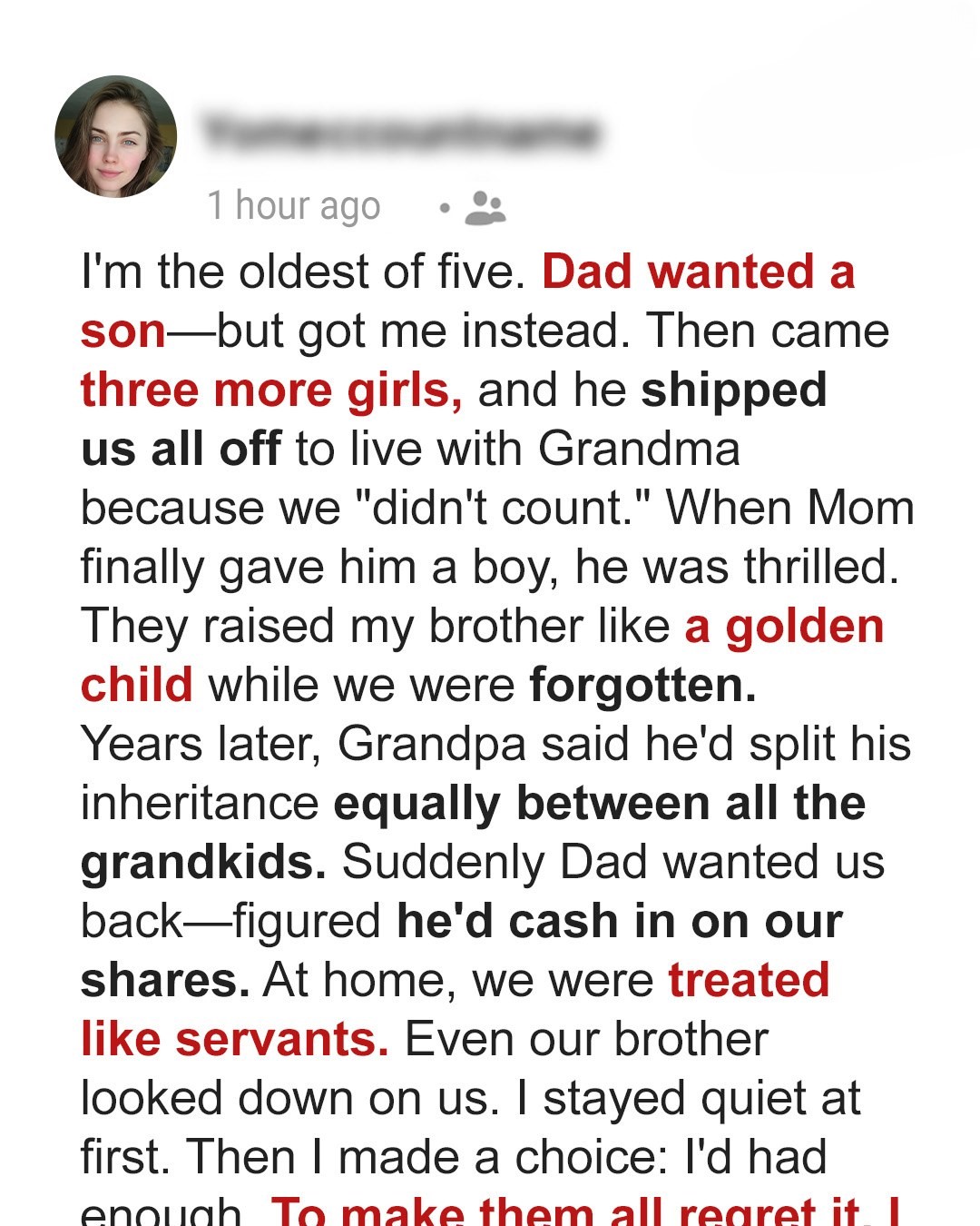 He never even had a son. He spent his entire life believing he had gotten what he wanted, abandoning four daughters for a lie. He lived and died believing in a fantasy, while we, the discarded ones, built something real, something honest, something unbroken. I stood there, phone pressed to my ear, the roar in my head deafening. It wasn’t just that I had made him regret it. It was so much worse. HE NEVER EVEN HAD WHAT HE ABANDONED US FOR. The irony. The cosmic, heartbreaking irony. His entire life was built on a delusion, while ours, forged in the fires of his rejection, became undeniably, beautifully, ruthlessly real.