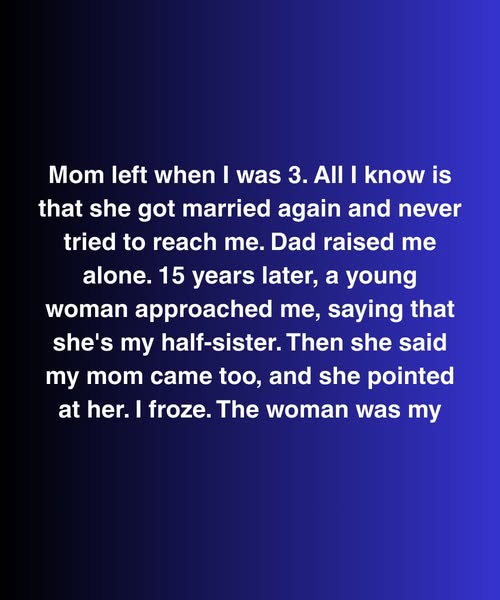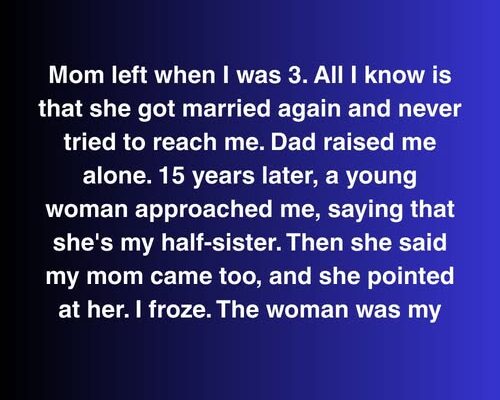 Fifteen years later, a young woman approached me, saying that she’s my half-sister. Then she said my mom came too, and she pointed at her. I froze.