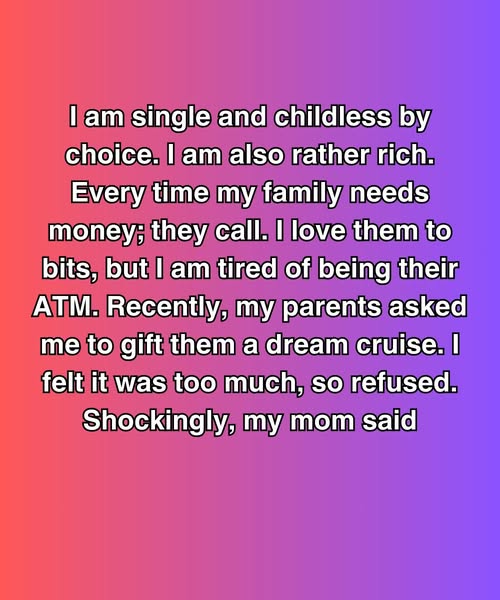 I love them to bits, but I am tired of being their ATM. Recently, my parents asked me to gift them a dream cruise. I felt it was too much, so refused.