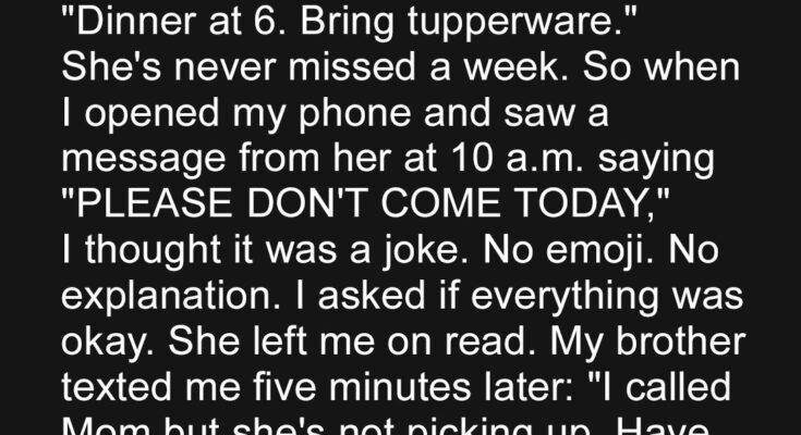 My fingers hovered over the keyboard, ready to type, “Is everything okay? What’s wrong?” But then I paused. Please don’t come today. It wasn’t “Dinner’s cancelled,” or “I’m sick.” It was an active request, almost a plea. An immediate, cold dread settled in my chest. Something is seriously wrong.