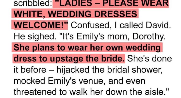 I walked down the aisle, my arm linked with my father’s, my bouquet clutched tight. My eyes, in that moment, were locked on one person and one person only: her. She was there, in the third row, radiant. Dressed head-to-toe in white lace. It wasn’t an ivory, or a cream, or an off-white. It was blinding, unapologetic white. Like a second bride.