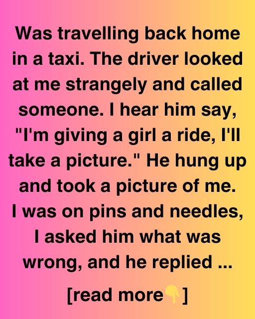 Was travelling back home in a taxi. The driver looked at me strangely and called someone. I hear him say, “I’m giving a girl a ride, I’ll take a picture.” He hung up and took a picture of me.