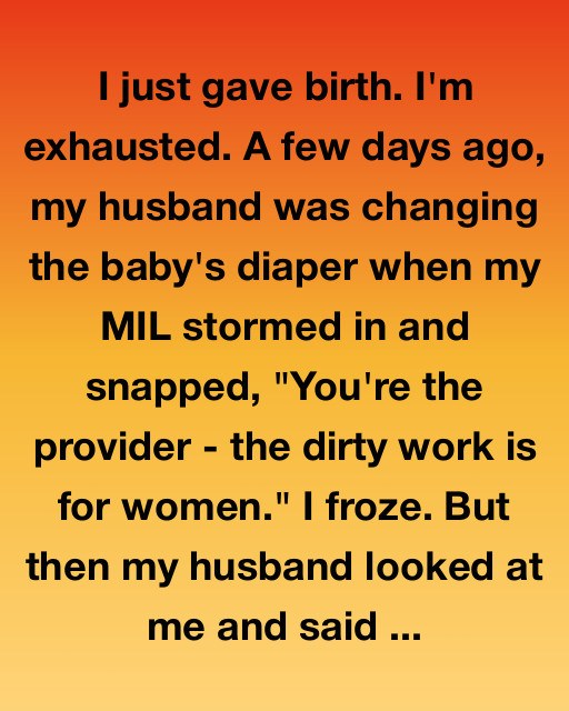 I just gave birth. I’m exhausted. A few days ago, my husband was changing the baby’s diaper when my MIL stormed in and snapped, ‘You’re the provider – the dirty work is for women.’ I froze.