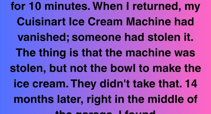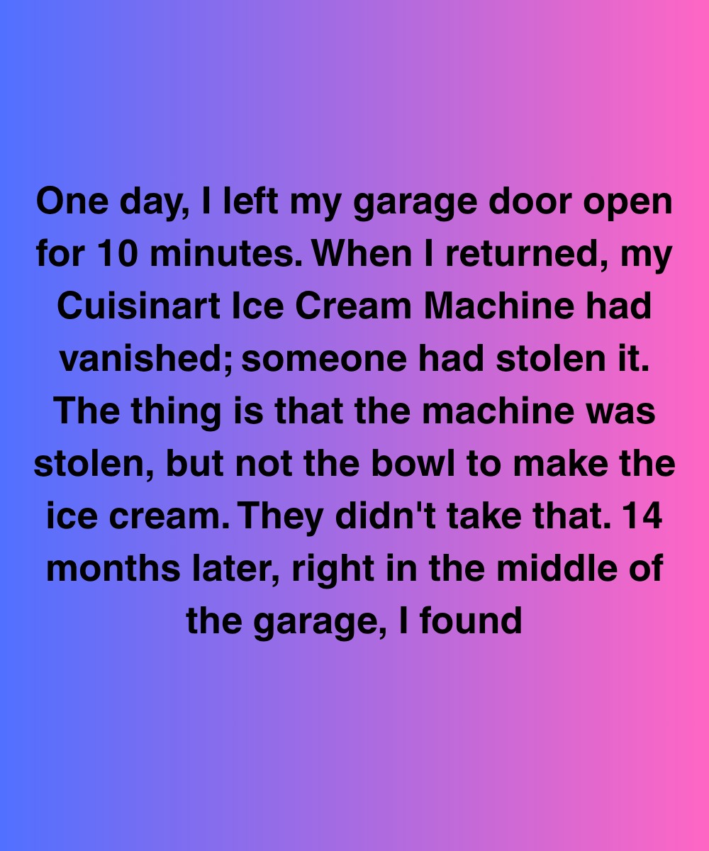 One day, I left my garage door open for 10 minutes. When I returned, my Cuisinart Ice Cream Machine had vanished; someone had stolen it. The thing is that the machine was stolen, but not the bowl to make the ice cream.