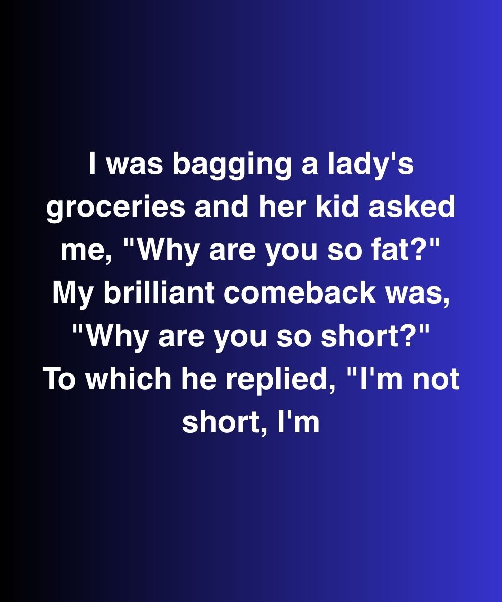 I was bagging a lady’s groceries and her kid asked me, “Why are you so fat?”