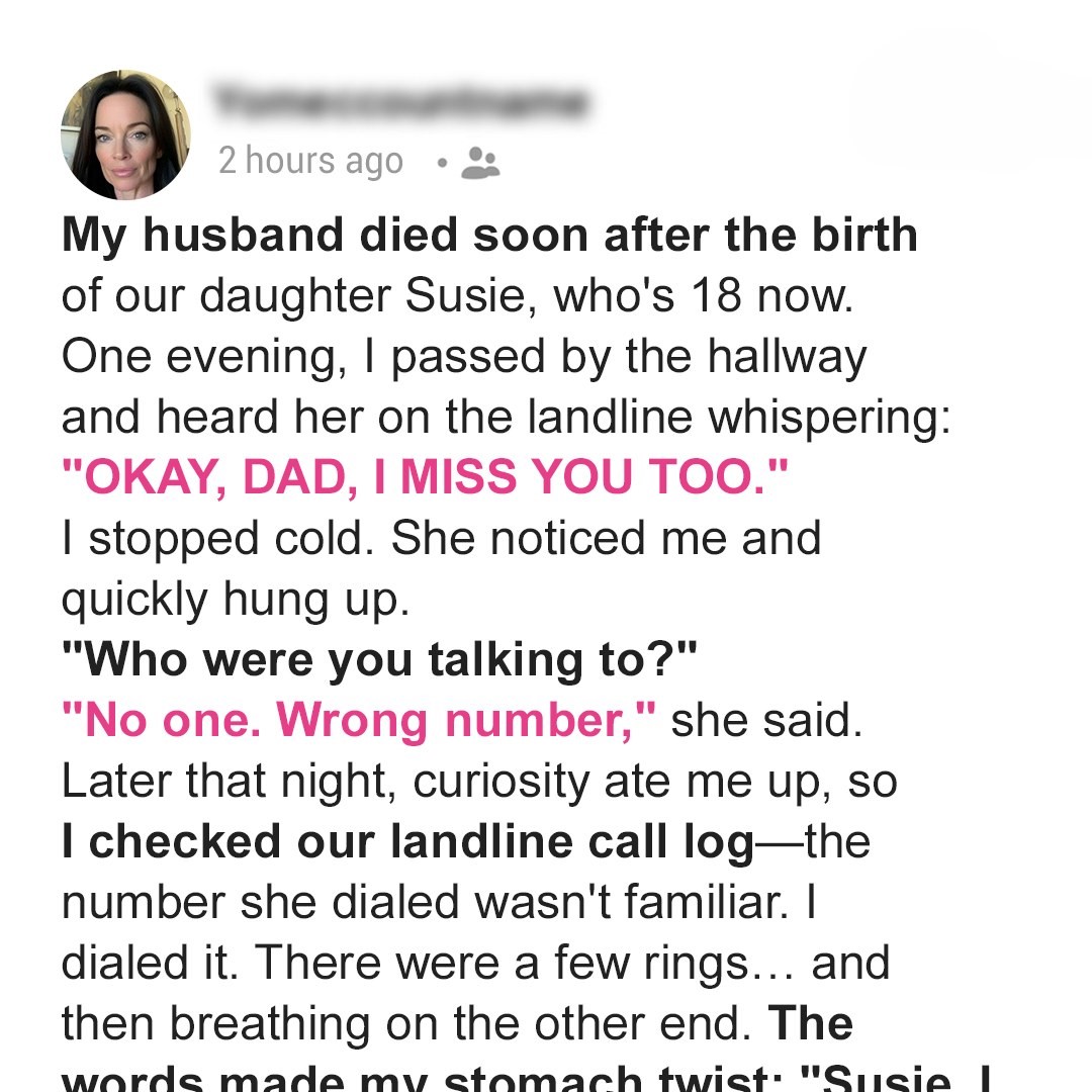 My blood ran cold. The phone slipped from my fingers, clattering against the old wooden floor. A metallic clang that sounded like a gunshot in the sudden silence. She whirled around, eyes wide, guilty. But I barely saw her. All I could hear was that whisper. All I could feel was the impossible, crushing weight of those words. I buried her father 18 years ago.