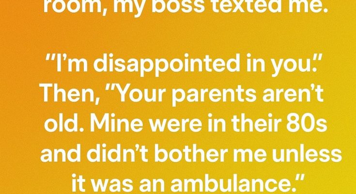My mother… she was the last thread. The last person who truly understood. And I missed her final goodbye. Not because of my boss. Because I let myself be that person again. The one who prioritizes a job, even when my heart was screaming.