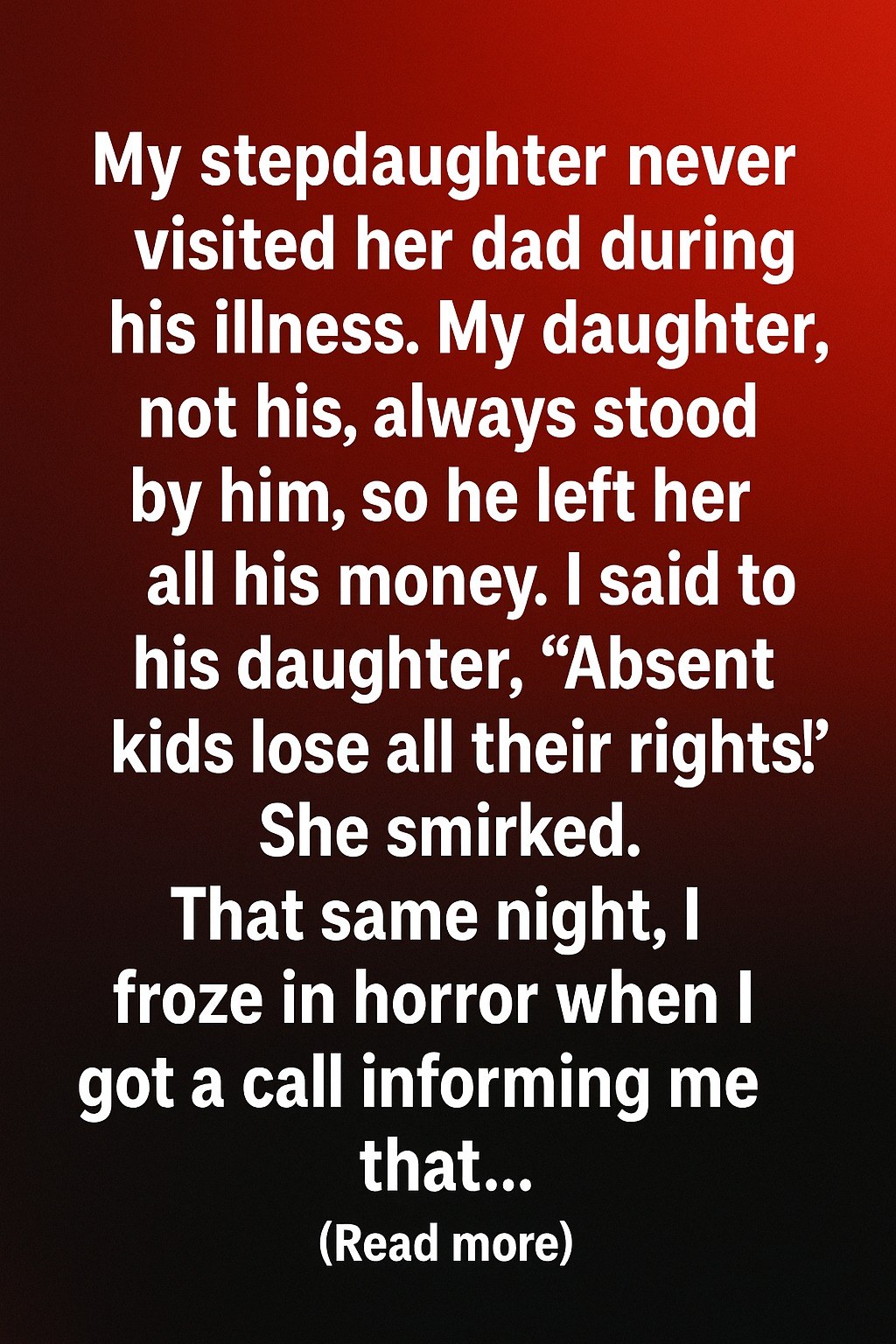 “I’m his… his child,” I managed, my own voice thin and reedy. “He just passed. And he made me promise.”