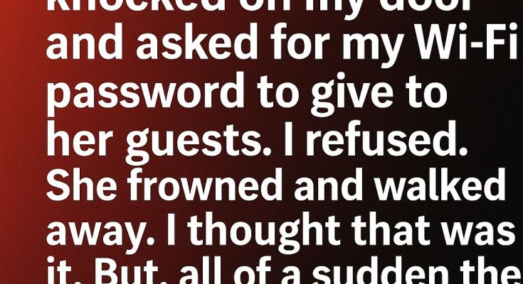 They stood at the edge of my lawn, looking a little nervous, a little embarrassed. “Excuse me,” they started, voice soft, almost a whisper. “I know this is a huge ask, and I totally understand if you say no… but my internet still isn’t set up. Is there any chance I could get your Wi-Fi password, just for a few days? I really need to connect.”