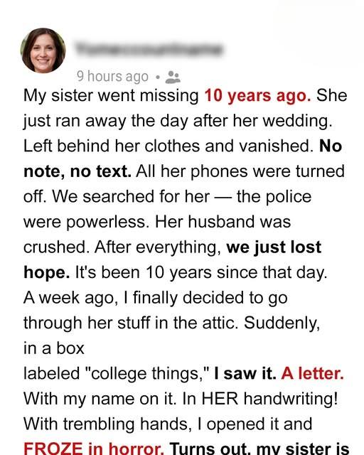 My Sister Was Nowhere to Be Found After Her Wedding Night, and Ten Years Later I Discovered a Letter She Left – Story of the Day