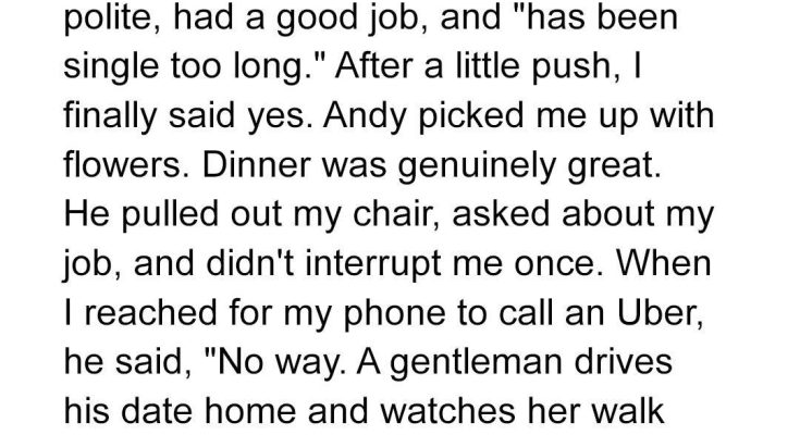When the date ended, a pleasant but unremarkable evening, I was ready to go home. The restaurant emptied out around us, the cool night air a welcome change from the warm, slightly stuffy interior. “I’ll call a ride,” I started, already reaching for my phone.He put a hand on my arm. Gentle, but firm. “Nonsense. I’ll drive you.” He seemed so insistent. A tiny flicker of unease, a whisper of a feeling, but I pushed it down. It felt old-fashioned, maybe a little charming, but also a bit… controlling. I forced a smile. “Are you sure? It’s a bit out of your way.”