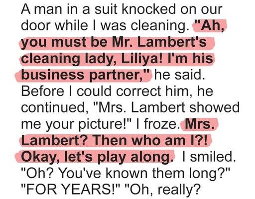 I opened the door, a polite smile ready. “Can I help you?” I asked, a little confused.He didn’t return the smile. He just stared at me for a moment, his eyes scanning my casual outfit, then the foyer, then back to my face. “Ah, yes. I’m here to see [my husband]. Is he in?” His voice was clipped, businesslike.