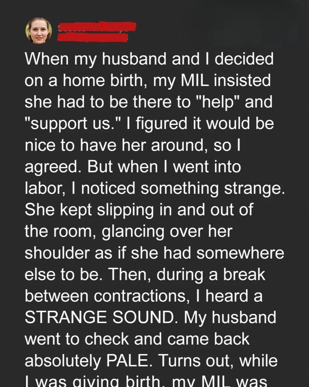 It wasn’t until an hour later, nestled in bed with our newborn, that I realized my mother-in-law still hadn’t reappeared. My husband looked tired, but his joy outshone everything. “Where’s your mom?” I whispered, my voice hoarse. He hesitated. “She… uh… she had to leave. Something came up.” He avoided my gaze, rubbing my arm. Something came up? During her grandchild’s birth? It felt incredibly out of character for the woman who’d insisted on being in the house. But I was too exhausted, too overwhelmed by new motherhood, to press it.