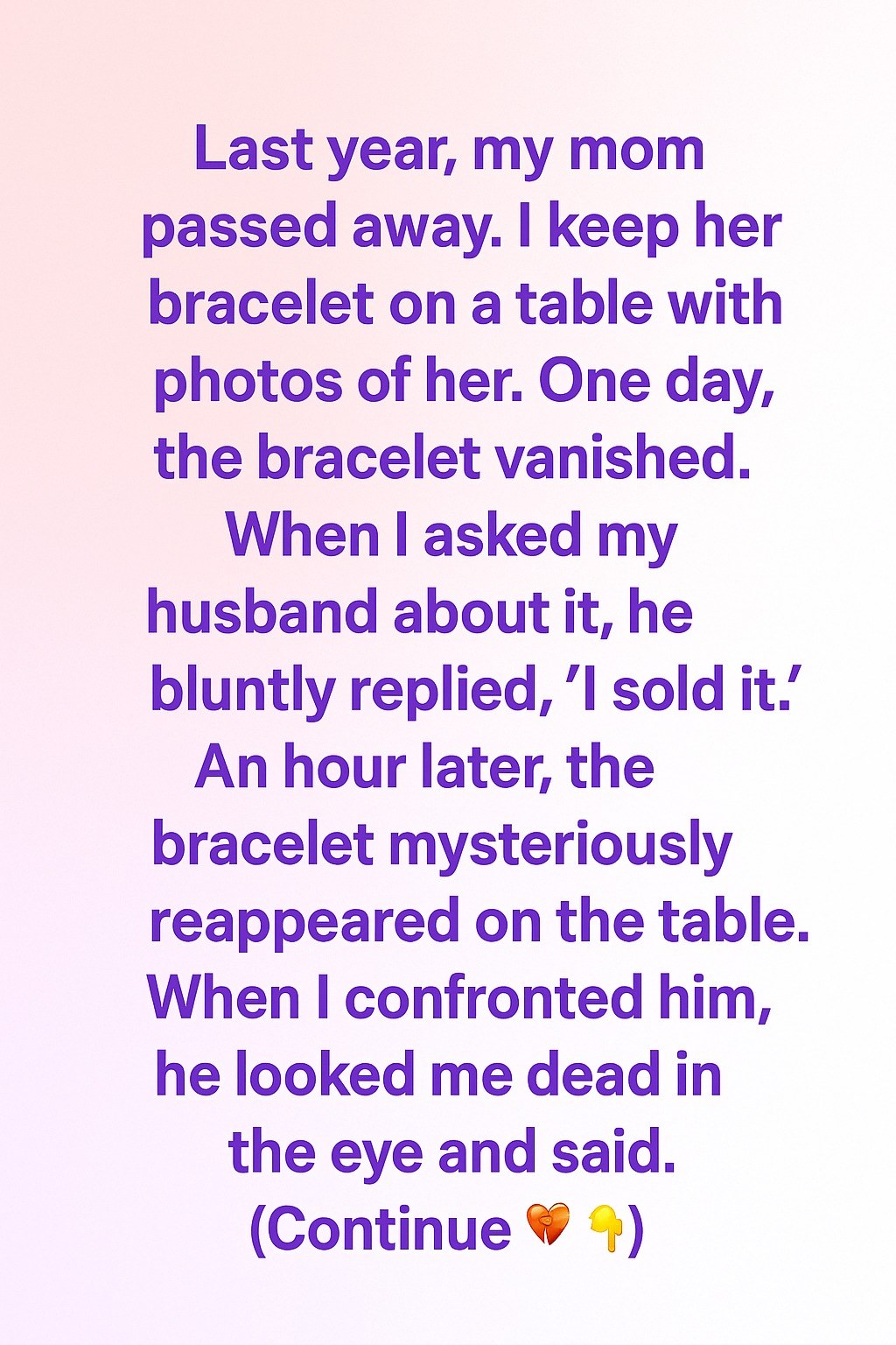 “For us,” they said, “A reminder that our hearts are always connected, no matter what.”I believed them. I wore that bracelet every single day. Through lazy mornings and hurried evenings, through laughter that shook the apartment and quiet tears shared in the dark. It was more than jewelry; it was a promise. A tangible symbol of love, trust, and our shared future.