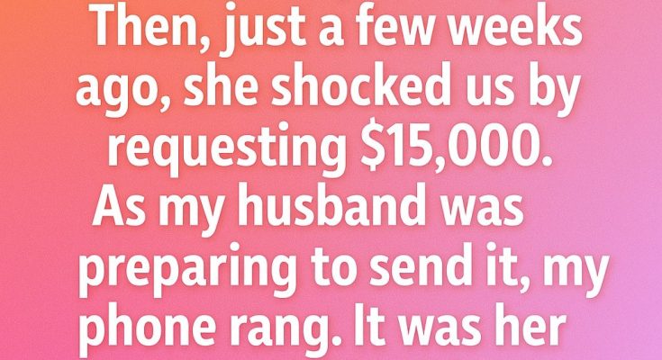 My stomach dropped. We weren’t struggling, but $15,000 wasn’t exactly pocket change. It was a significant chunk of our savings, money we’d set aside for a new roof, for our own quiet retirement plans. I hesitated. My mind raced through the numbers, the bills, the commitments. I looked at my wife. Her eyes were wide, full of silent appeal. “It’s her future,” she whispered, reaching for my hand. “Please.”