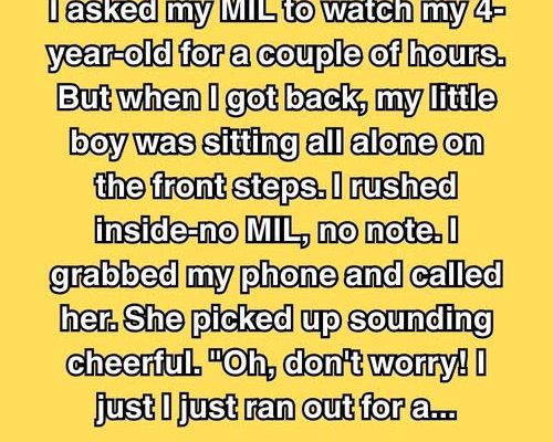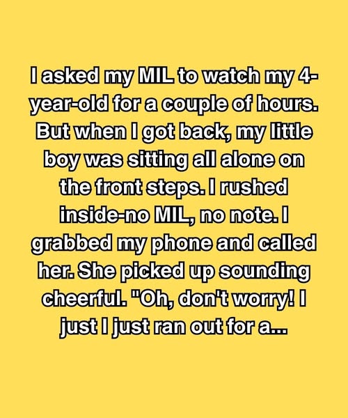 That’s when she offered. My mother-in-law. She’s… a lot. Overbearing, opinionated, always ready with unsolicited advice. But she absolutely adored her grandson. He was the sun, moon, and stars to her. So when she said, “Bring him over, I’ll watch him,” I felt a wave of pure, unadulterated relief. I even considered leaving him at our house, since it was more convenient for my morning rush, but she insisted. “No, bring him here, honey. I’ve got snacks, we’ll bake cookies.” My little guy was ecstatic. “Grandma’s house!” he yelled, practically bouncing out of his car seat. I hugged him tight, feeling so grateful, so safe knowing he’d be with her.