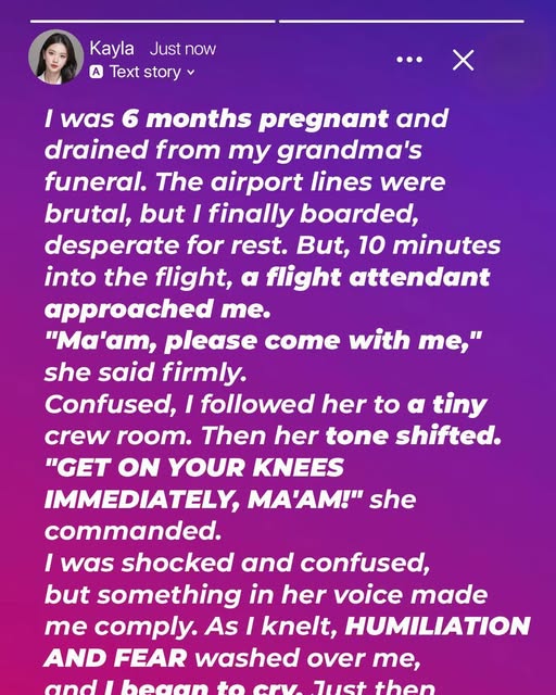 A shadow fell over my seat. I braced myself, expecting a polite request to move my bag, or an offer of a drink I wouldn’t accept. Instead, a flight attendant stood there, not with a tray or a cart, but with an unnerving stillness. Her uniform was crisp, her smile professional, but her eyes… Her eyes, dark and knowing, landed on my swollen belly, then met mine. There was an intensity there that made my stomach churn, not with morning sickness, but with a cold dread.