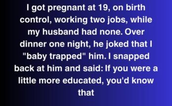 I got pregnant at 19, on birth control, working two jobs, while my husband had none. Over dinner one night, he joked that I “baby trapped” him. I snapped back …