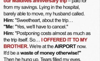 I had a stroke three days before our Maldives anniversary trip, paid for by my funds, at 52. My spouse called from the hospital, barely moving. He asked, “Sweetheart, about …